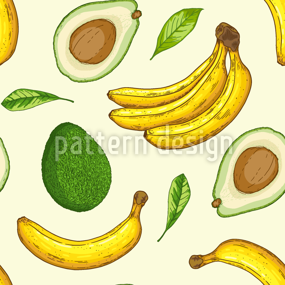 | Beschreibung | Tropischer Hintergrund mit Banane und Avocado. | ||