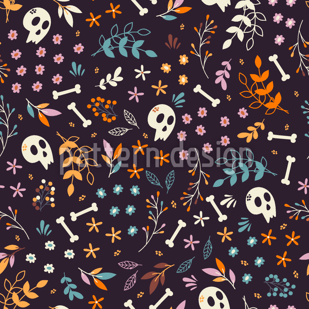 | Beschreibung | Gruselige Halloween-Totenköpfe und Knochen mit bunten Blumen. | ||