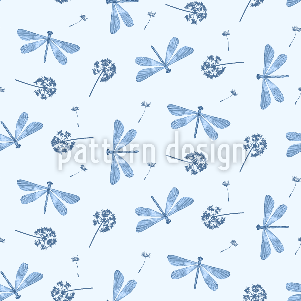 Libelle Und Pusteblume Nahtloses Vektormuster