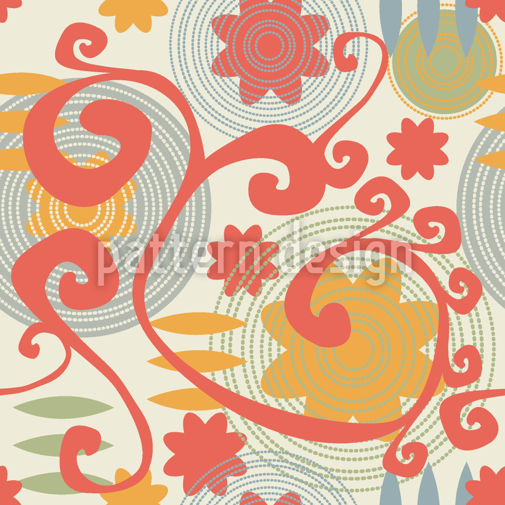 | Beschreibung | Blumen im Stil der Siebzigerjahre, Wirbel und Ornamente. | ||