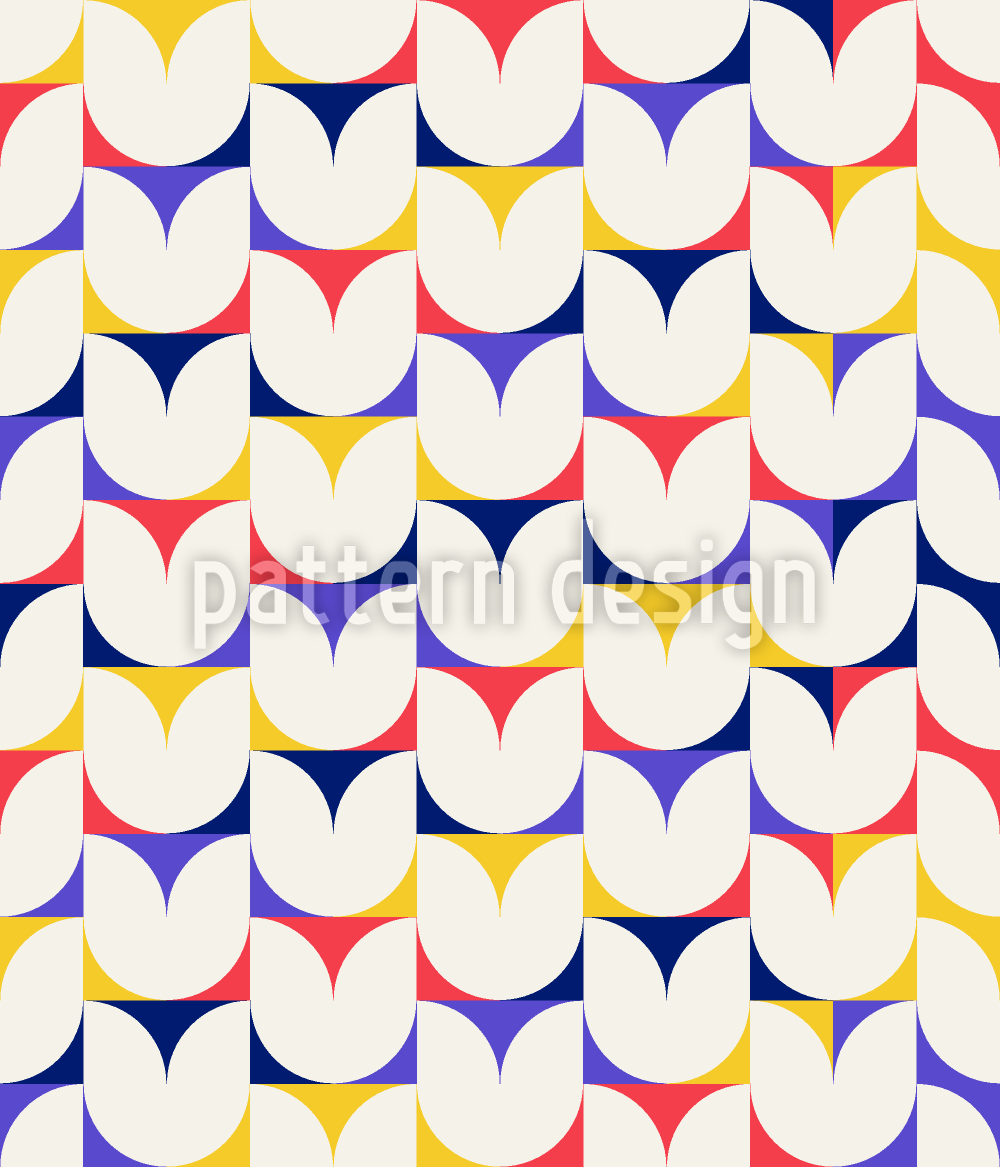 | Beschreibung | Retro -geometrisches Muster mit stilisierten Tulpenblüten. | ||