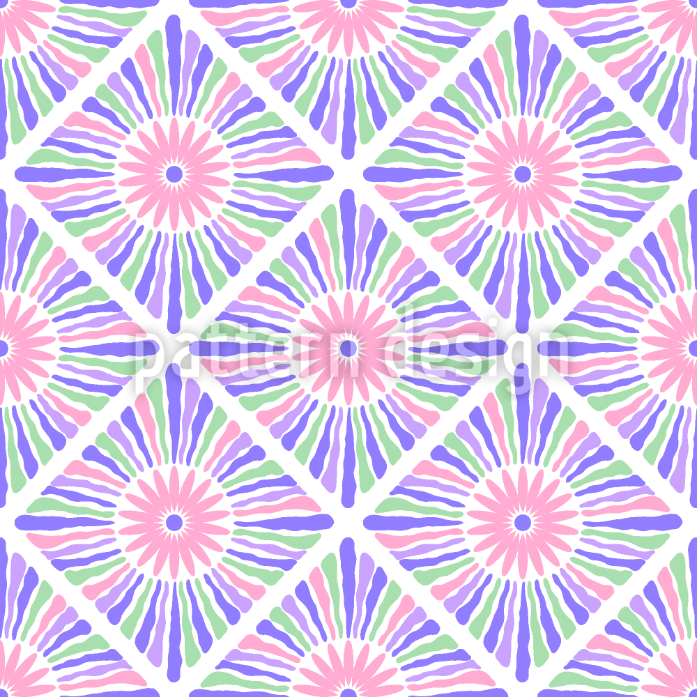| Beschreibung | Neonmuster von Diamantformen mit Blüten und Strahlen im Inneren. | ||