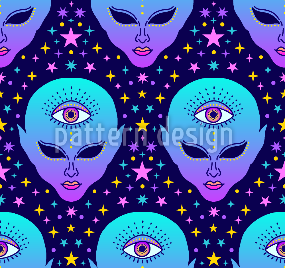 | Beschreibung | Bizarres Muster von neonfarbenen außerirdischen Gesichtern und Sternen. | ||
