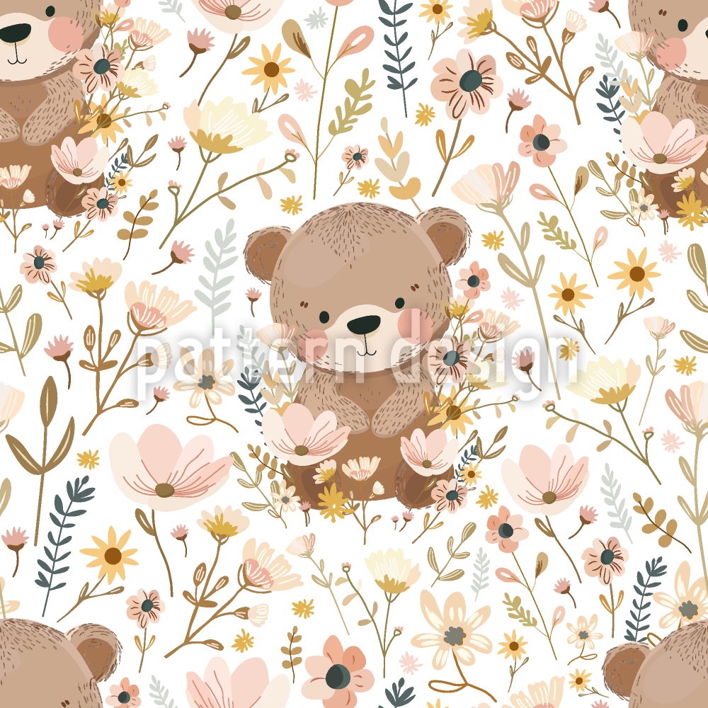 | Beschreibung | Bezauberndes Muster mit einem niedlichen Bärenbaby, das zwischen zarten Wildblumen sitzt, in sanften Pastelltönen, perfekt für ein Kinderzimmer. | ||
