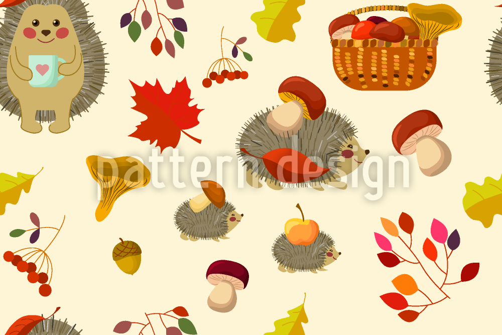 | Beschreibung | Süße Igel mit Pilzen, Äpfeln und Herbstlaub. | ||