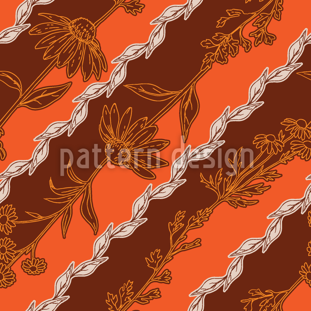 | Beschreibung | Das Streifenmuster wird durch stilisierte Blütenranken, die zwischen den Streifen hochklettern, aufgelockert. | ||