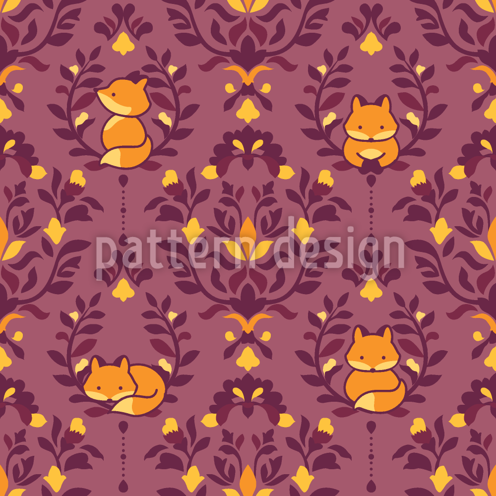 | Beschreibung | Bezauberndes Muster, das von Damast inspirierte Elemente mit kleinen Füchsen kombiniert. | ||