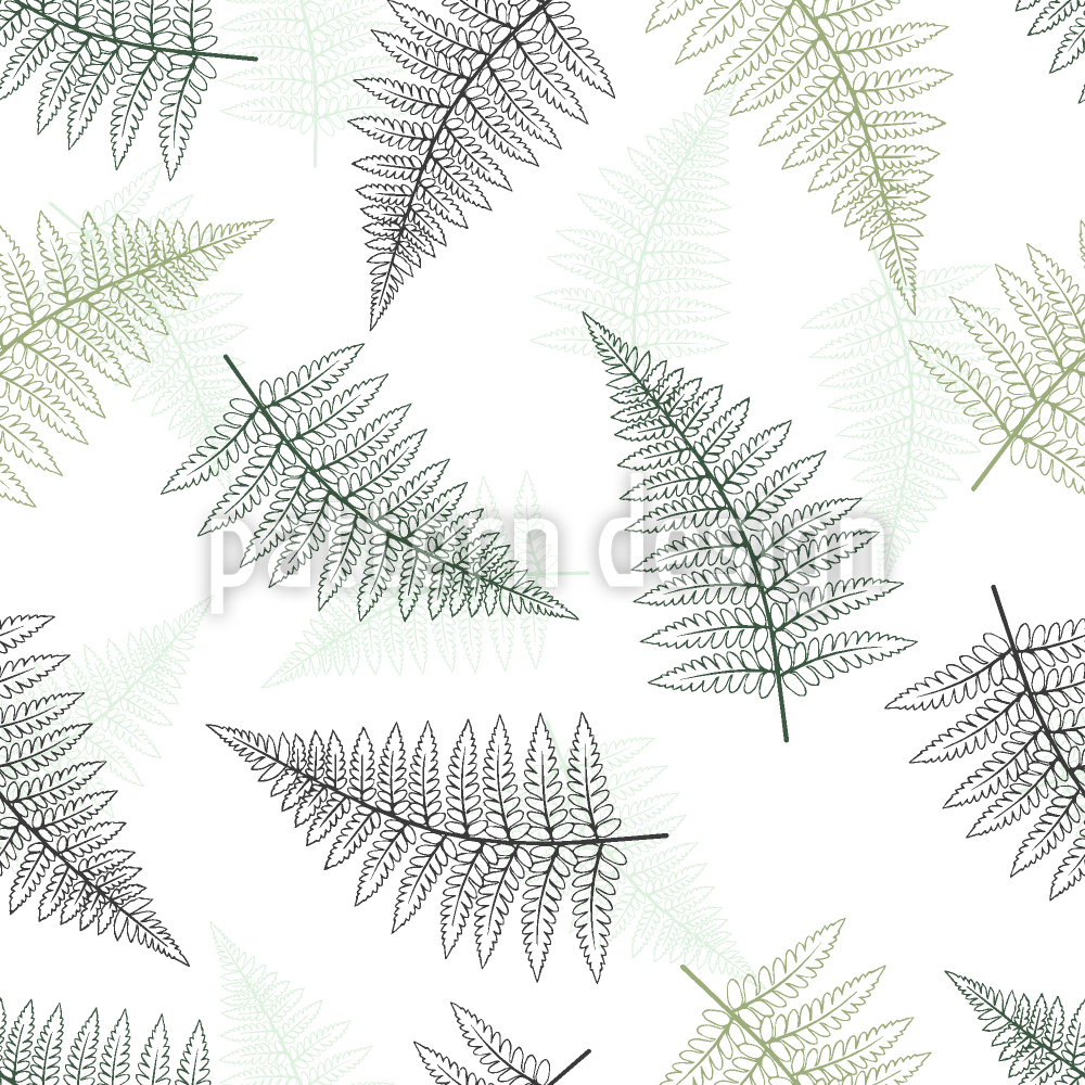| Beschreibung | Ein leichtes und luftiges Muster mit zarten Strichzeichnungen von Farnblättern, die über einen klaren Hintergrund verstreut sind. | ||