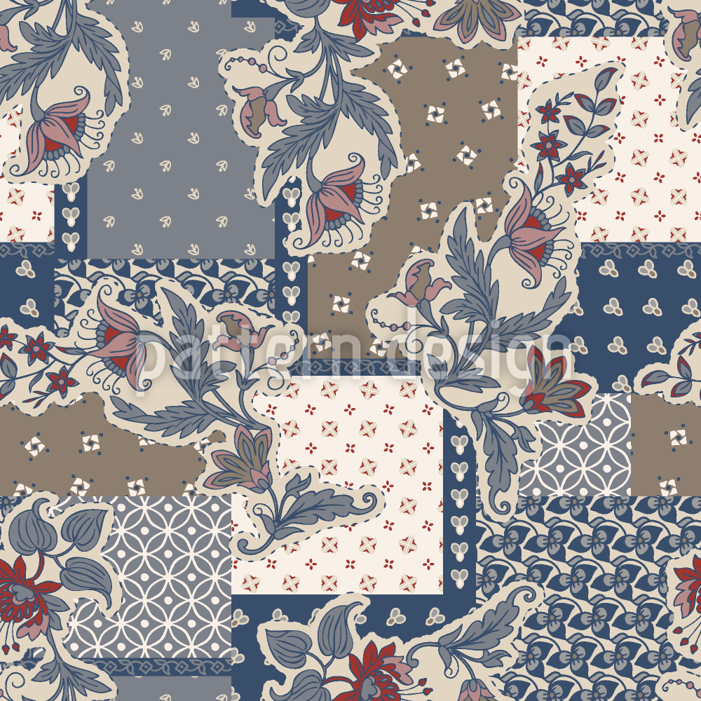 | Beschreibung | Zeitloses Patchworkmuster mit Patchwork-Blumen kombiniert mit ethnischen Fliesenmotiven in einem ausgewogenen Layout in sanften und neutralen Tönen. | ||