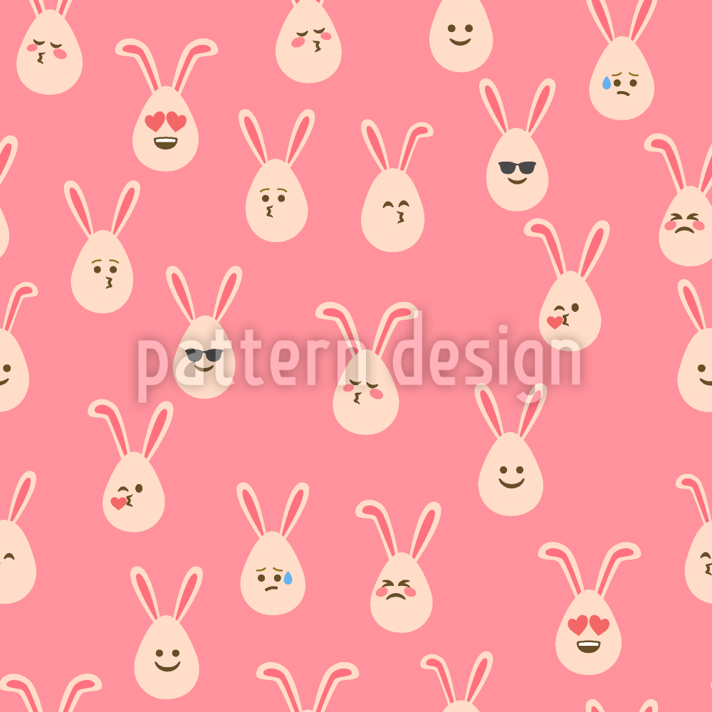 | Beschreibung | Ein nahtloses Muster, das Eier mit Emoticon-Gesichtern und Hasenohren zeigt. | ||