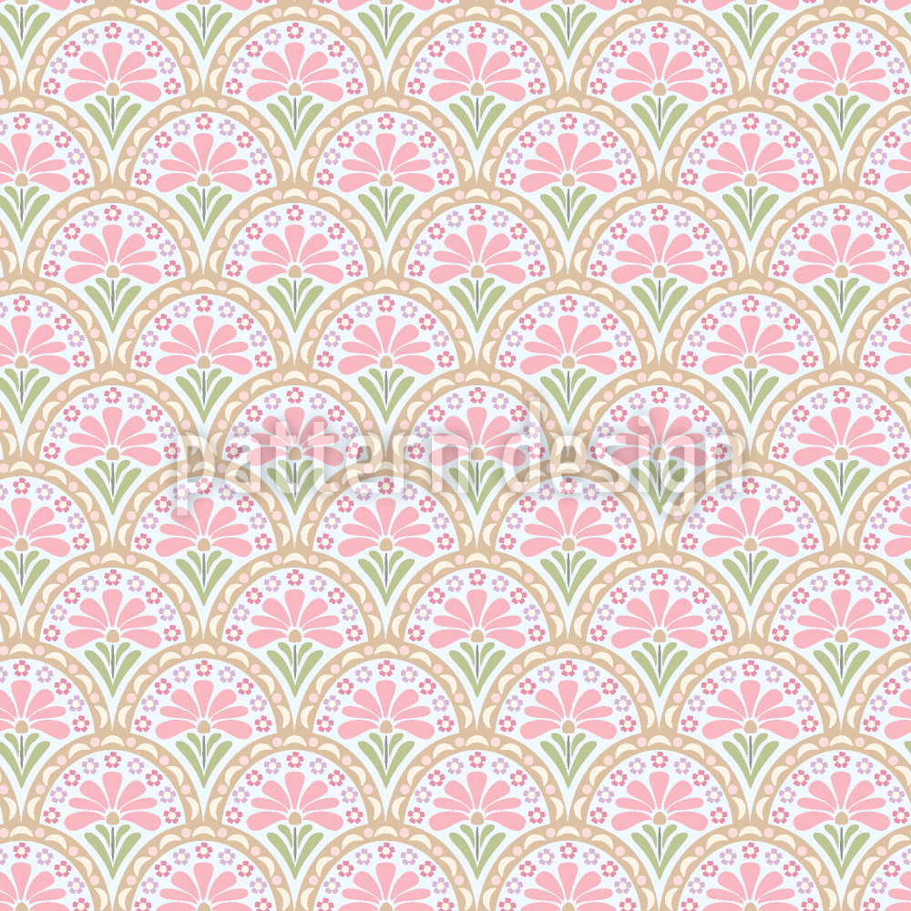 | Beschreibung | Blumen und stilisierte Formen, die auf Studien zum historischen Muschelmuster basieren, in sanften Farbtönen. | ||