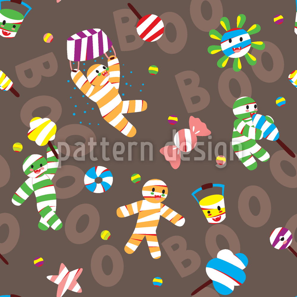| Beschreibung | Mumien Junge in verschiedenen Farben mit Süßigkeiten und Lutscher auf braunem Hintergrund mit Buchstaben. | ||