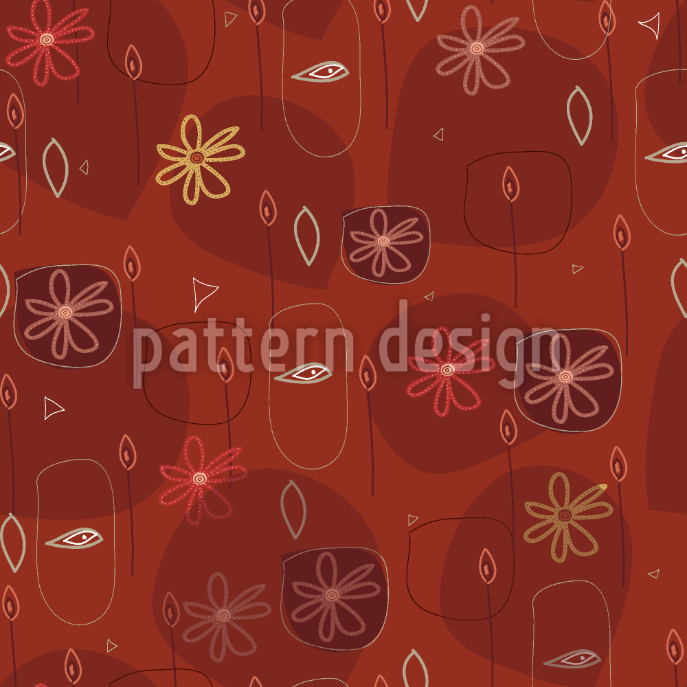 | Beschreibung | Fantasieformen und Blumen auf rotem Hintergrund. | ||