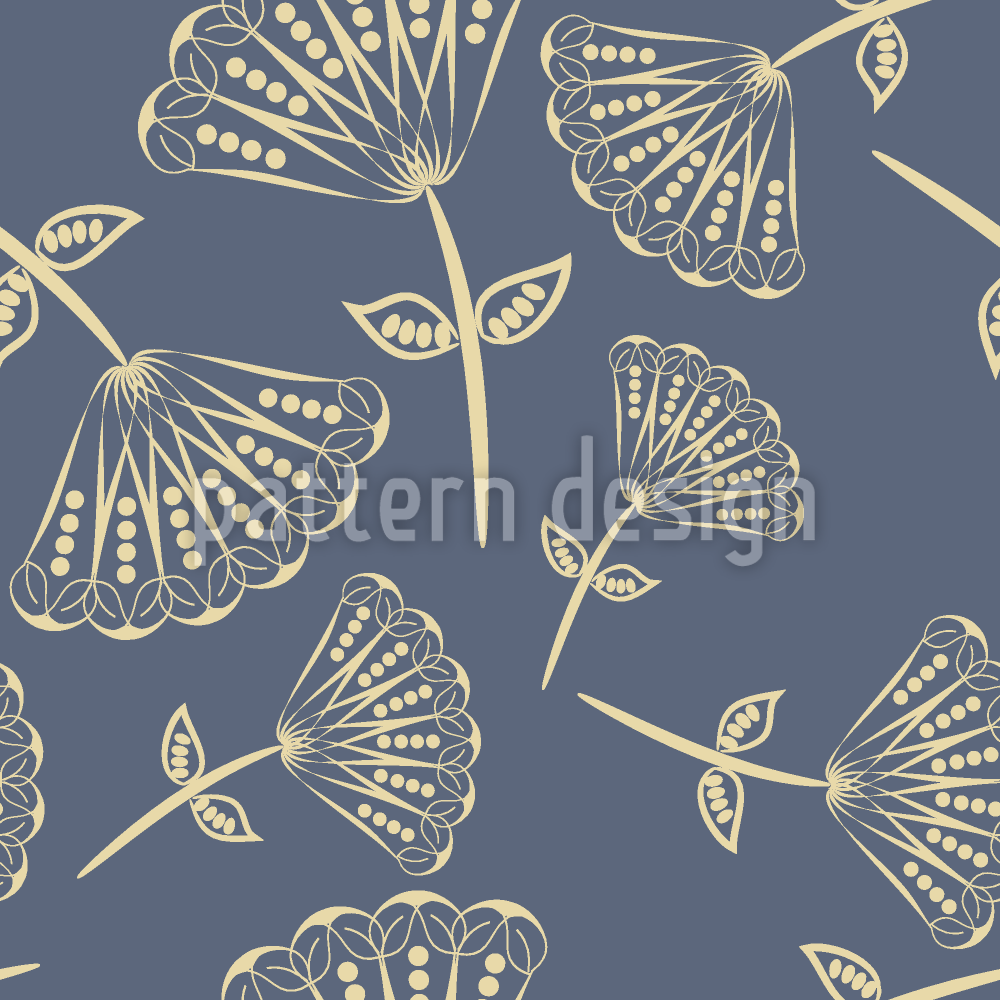 | Beschreibung | Hinreissend! Zart filigrane Fächerblumen-Ornamente zieren rauchblauen Hintergrund. | ||