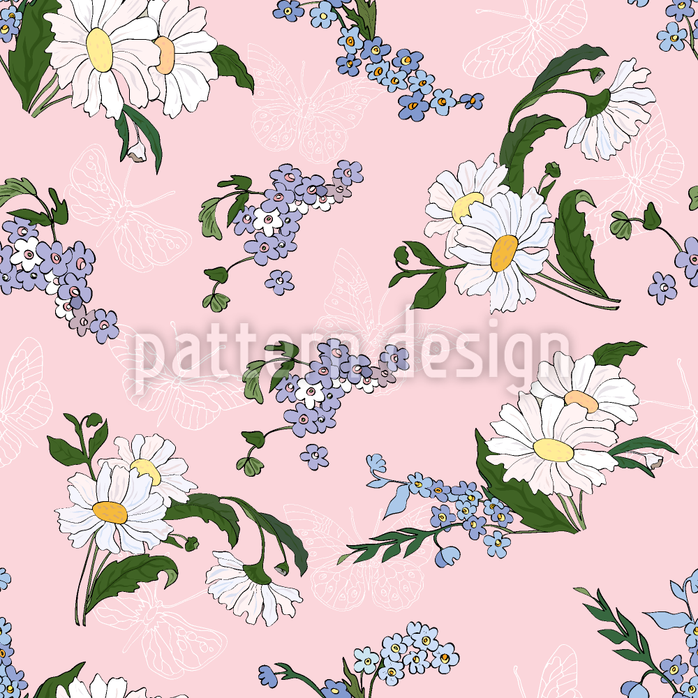 | Beschreibung | Florales Muster mit Gänseblümchen und Vergissmeinnicht. | ||