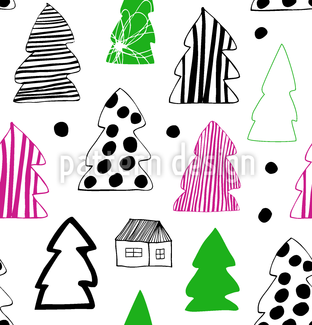 Painted Fir Woods Seamless Vector Pattern Design