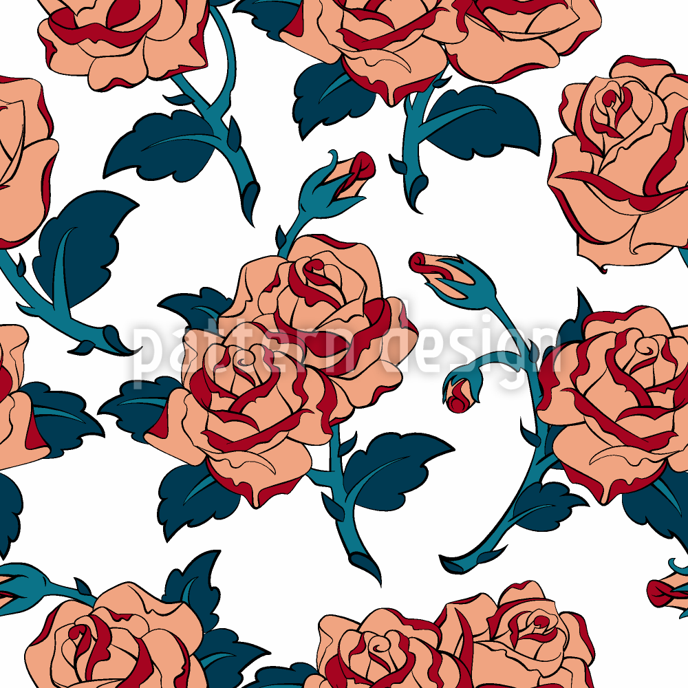 Roses In Bloom Seamless Vector Pattern Design