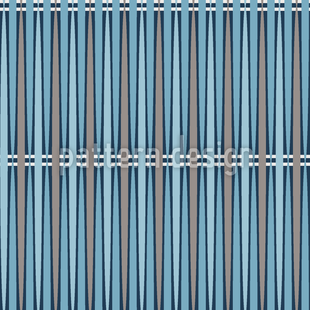 | Description | Businesslike vertical stripes modulate in width while weaving over and under sparse horizontal bands. | ||