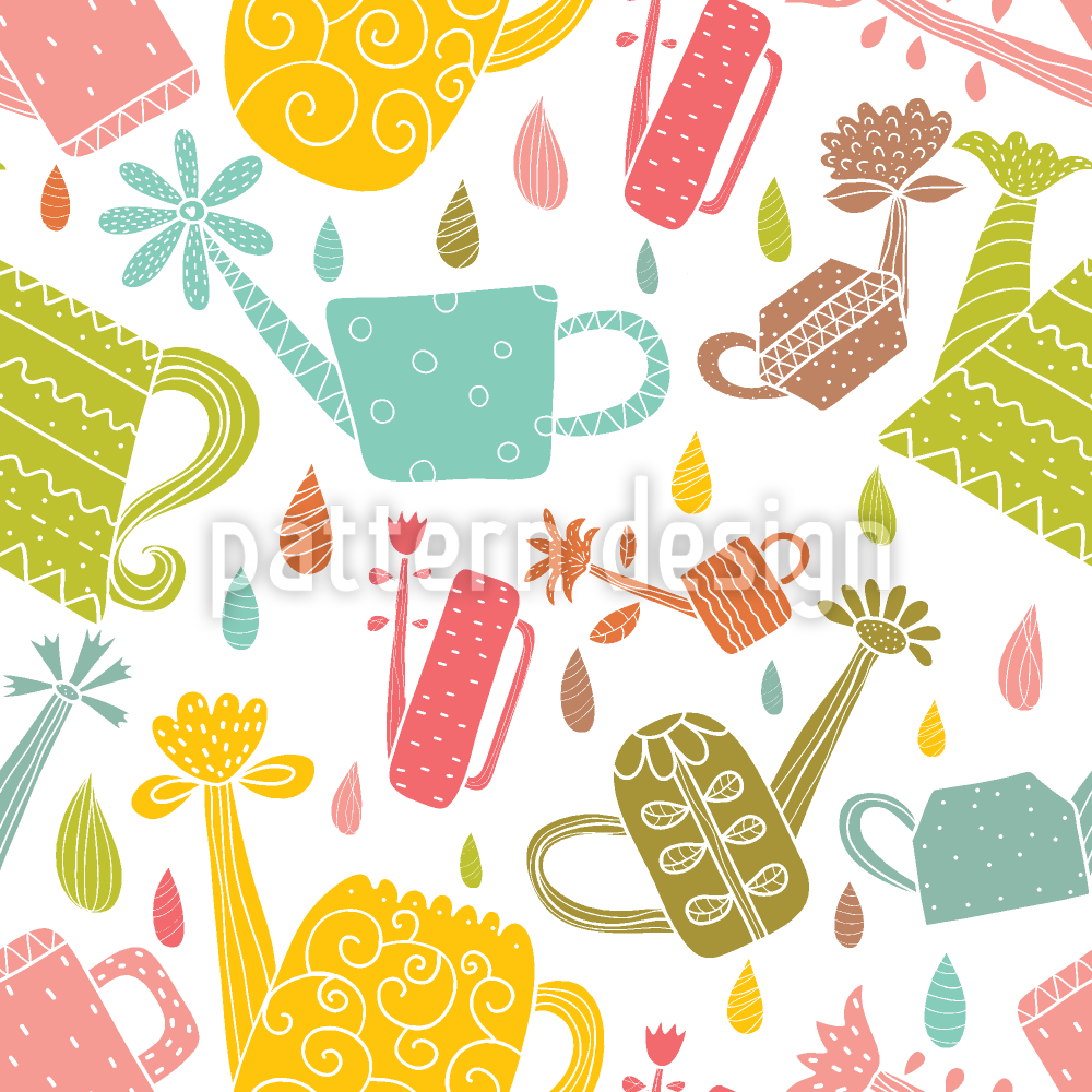 Shiny Watering Cans Seamless Vector Pattern Design