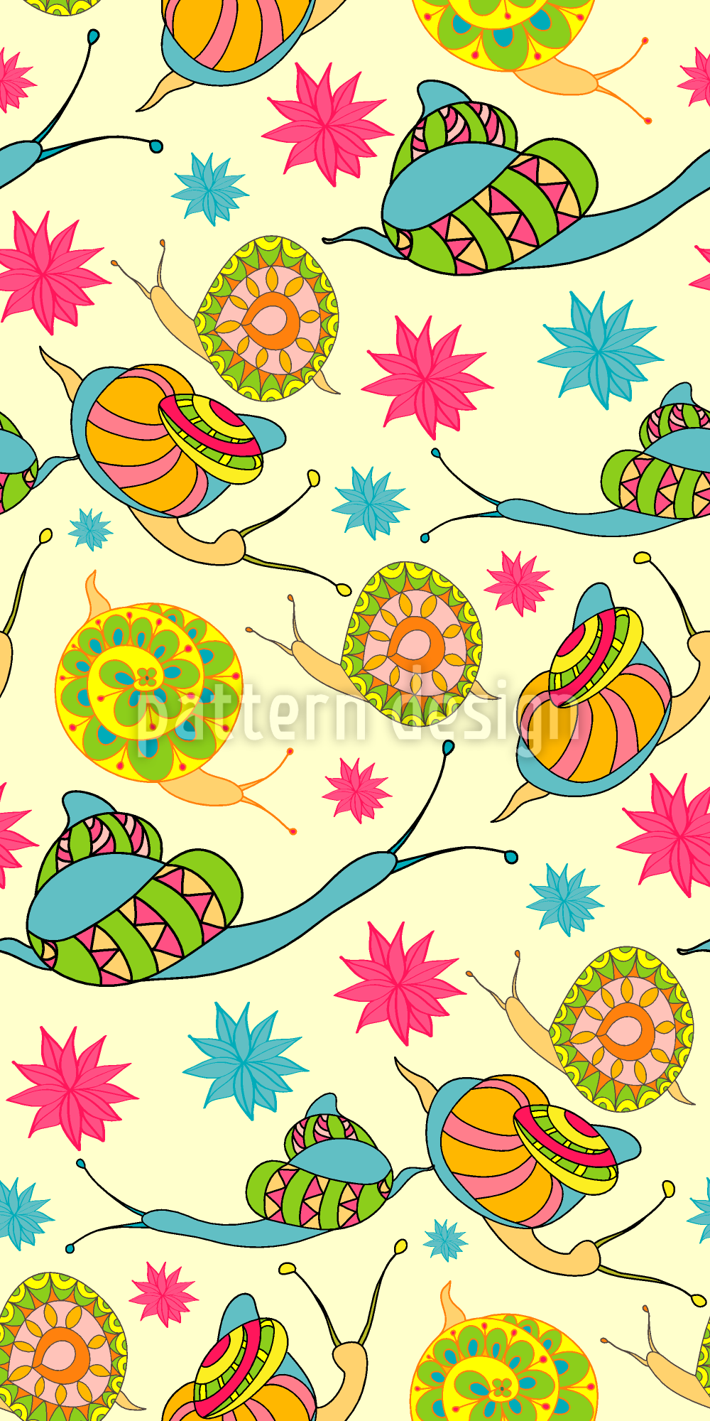 | Description | Seamless pattern with snails in cartoon style. | ||