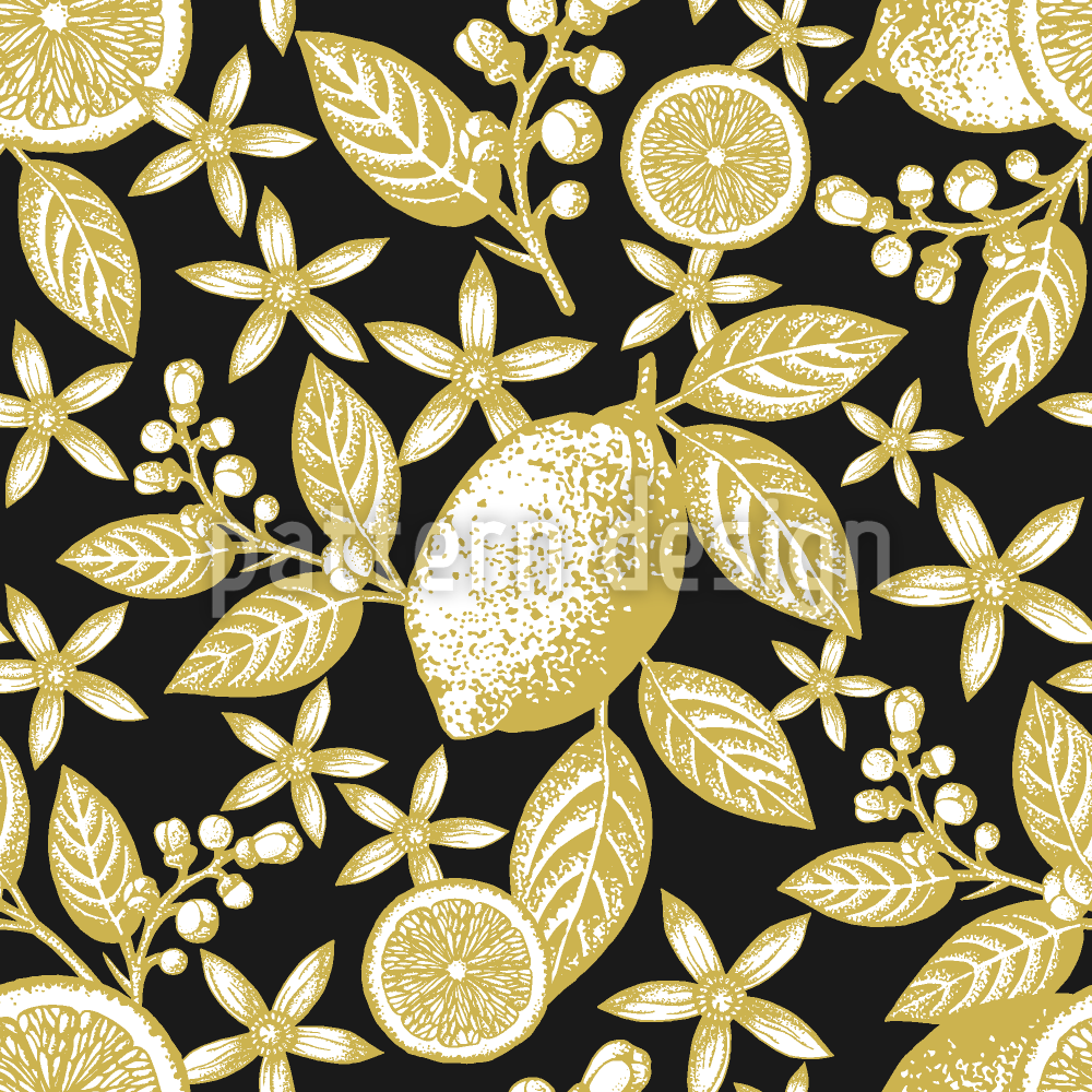 | Description | Opulent pattern design with golden lemons. | ||