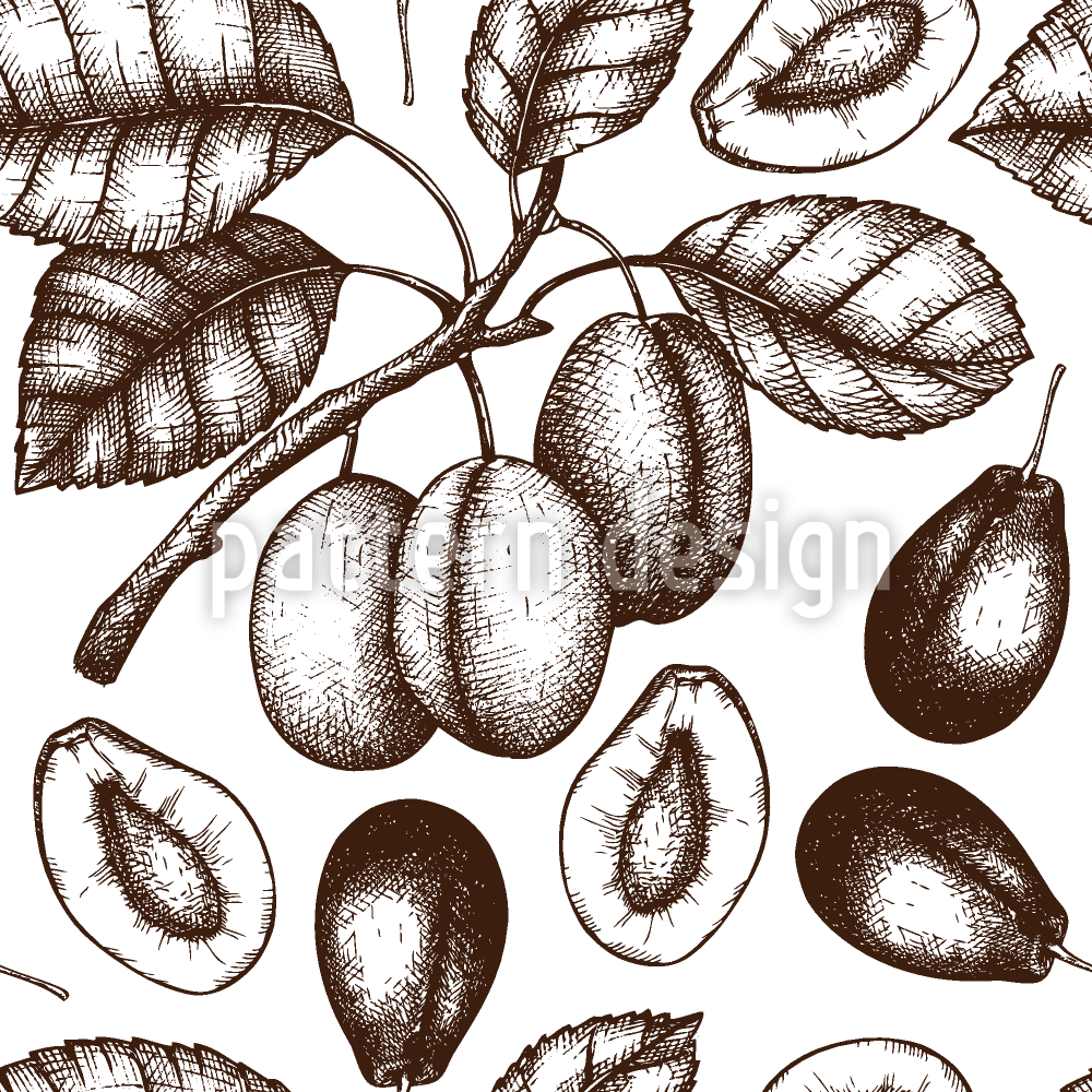 Vintage Plum Tree Seamless Vector Pattern Design