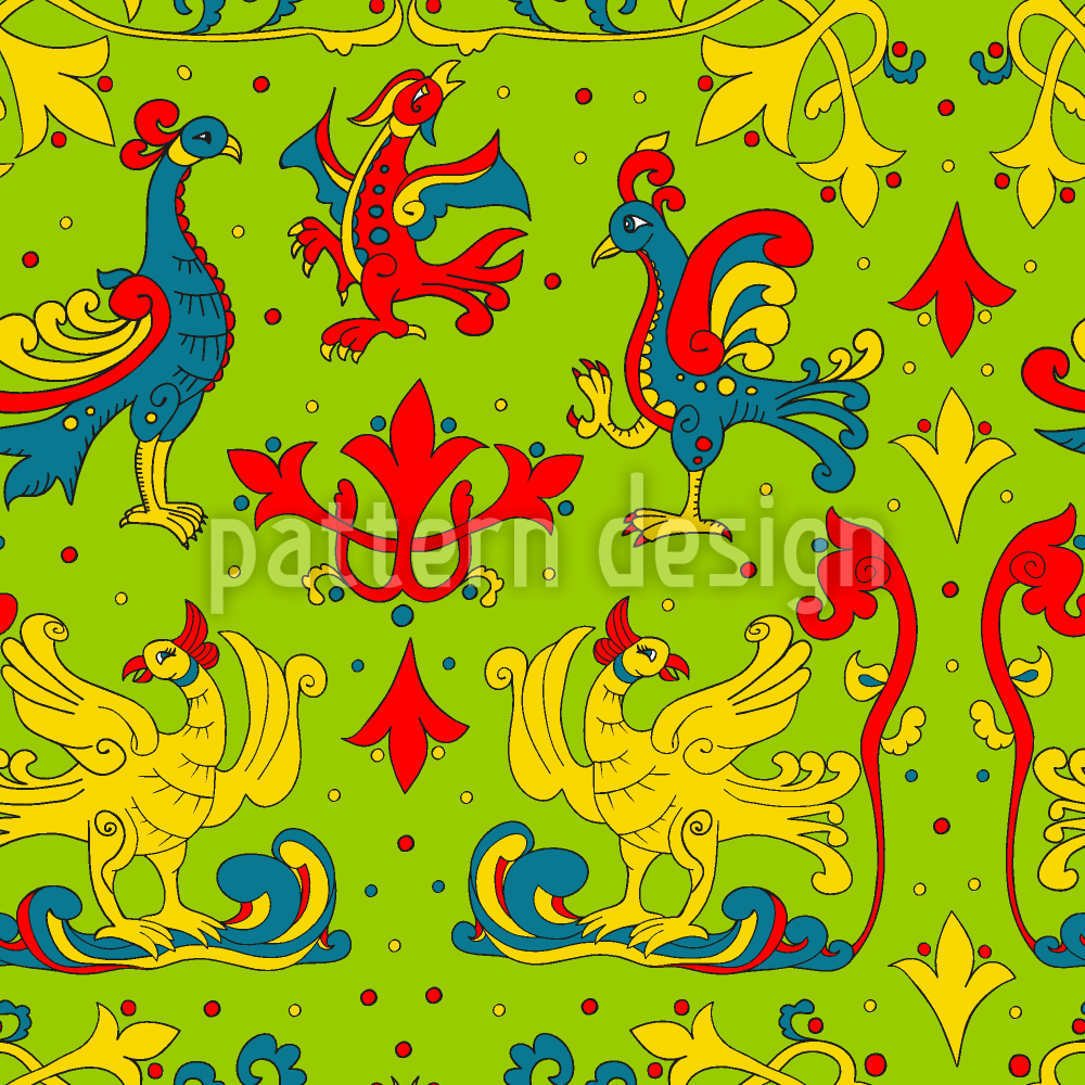 | Description | Russian traditional pattern with birds and curlicue. | ||