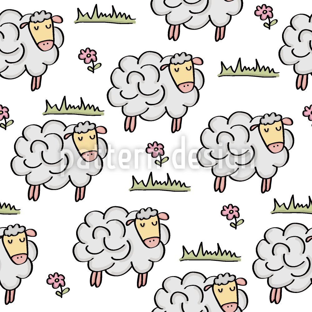 Grazing Sheep Seamless Vector Pattern Design