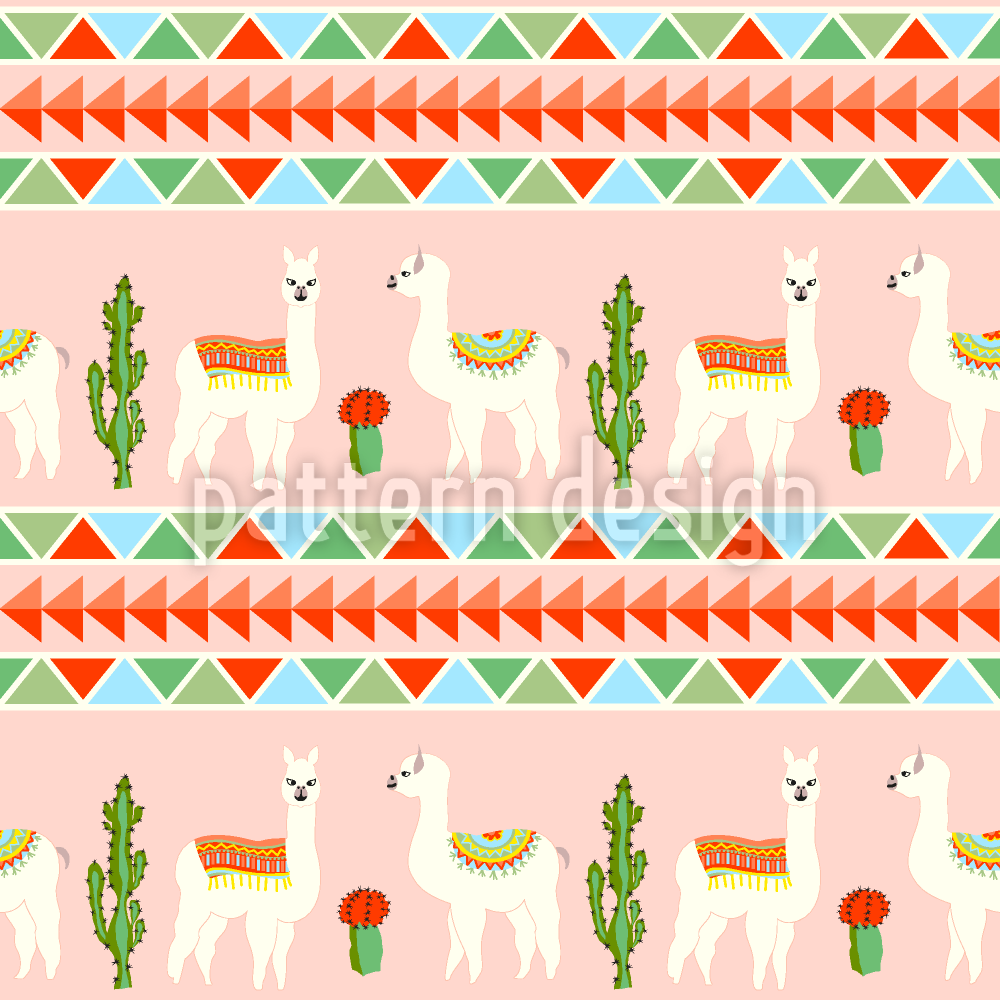 Llama In The Desert Seamless Vector Pattern Design