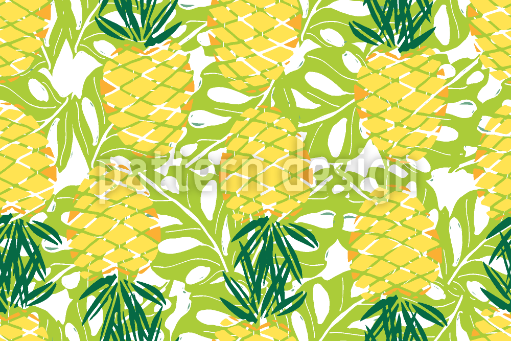 Ripe Pineapples With Palm Leaves Seamless Vector Pattern Design