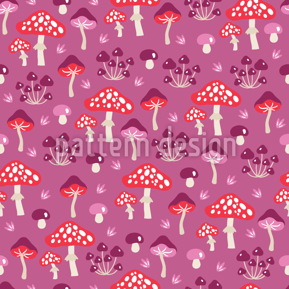Mushrooms In The Forest Seamless Vector Pattern Design