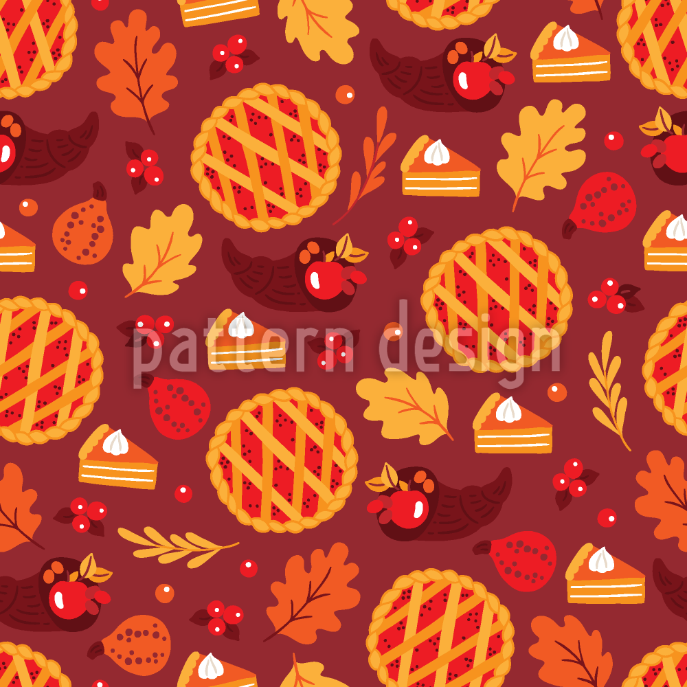 Pumpkin Cherry Cake Seamless Vector Pattern Design
