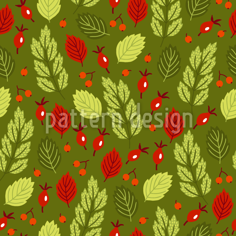 Autumnal Leaves And Berries Seamless Vector Pattern Design