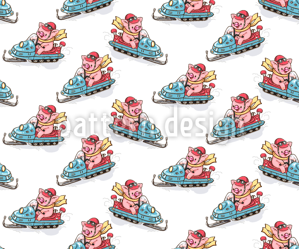 Piglets On Snowmobiles Seamless Vector Pattern Design