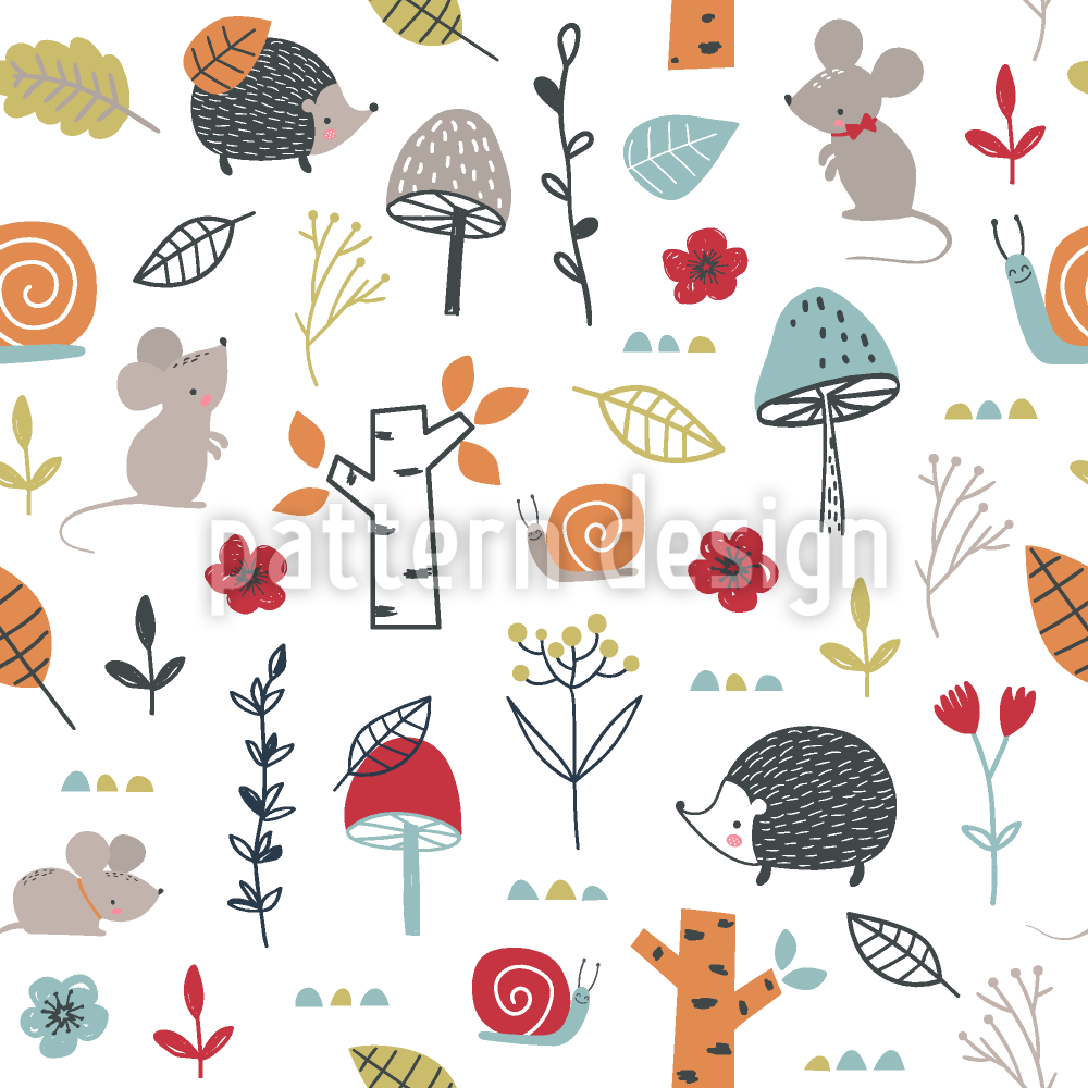 | Description | Cute seamless pattern with hedgehogs, mice and snails between mushrooms and flowers. | ||