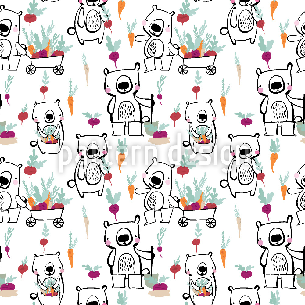 | Description | Cute drawn farming bears with carrots, beets and parsnips in a seamless pattern. | ||