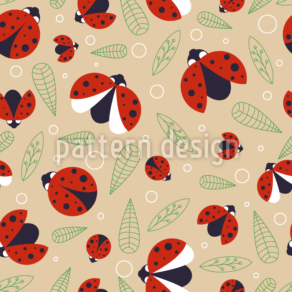 Ladybugs With Leaves Seamless Vector Pattern Design