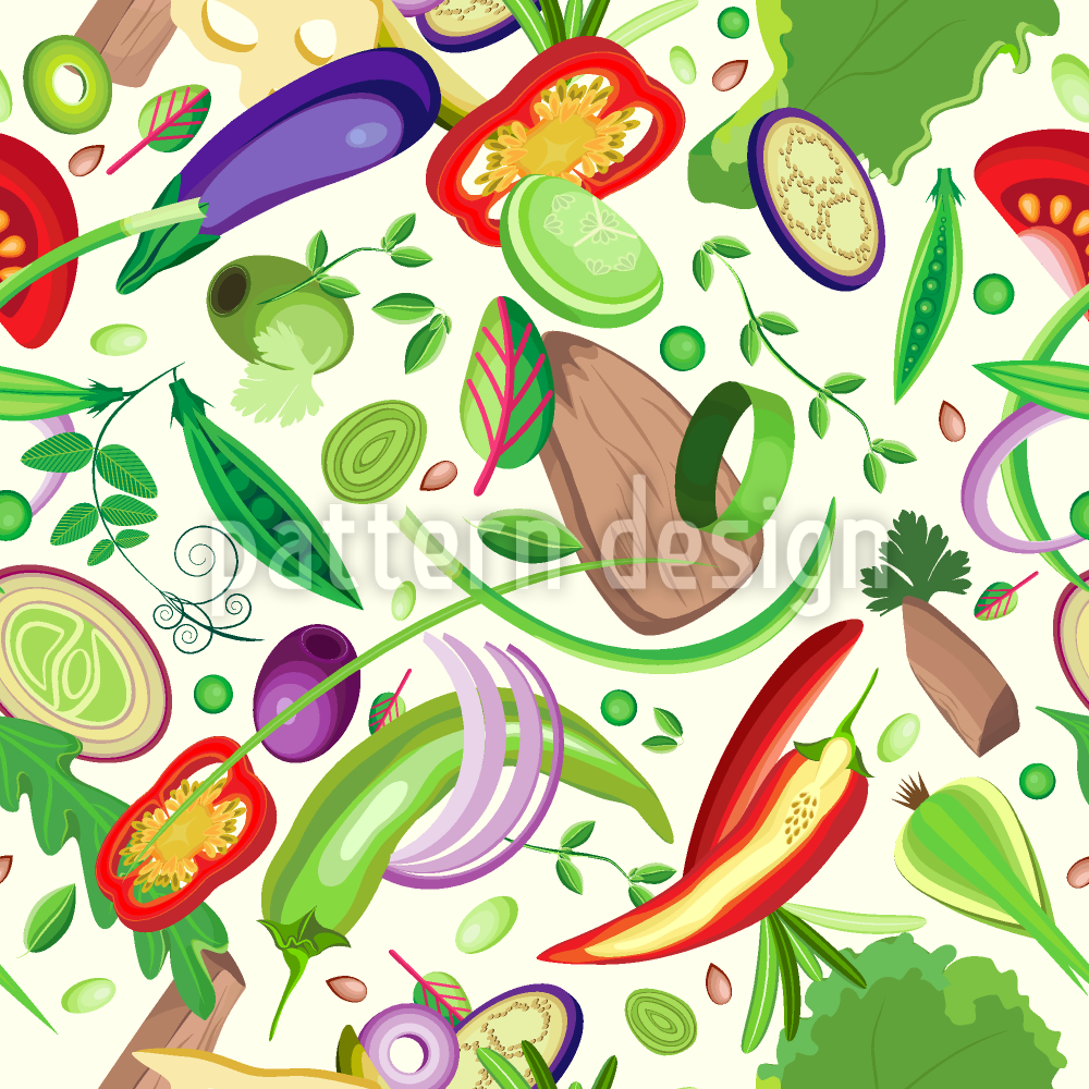 | Description | Seamless vector pattern of sliced vegetables and meat. | ||