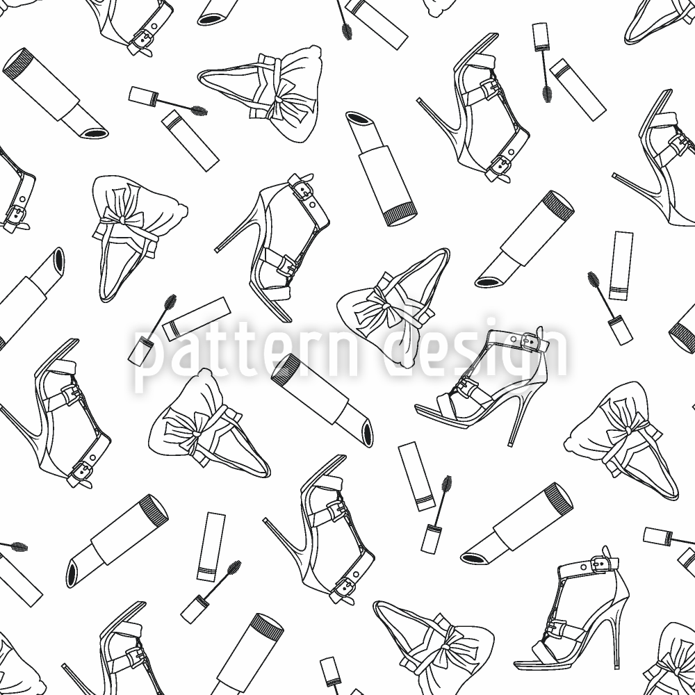 | Description | Pattern design consisting of shoes, bags, lipstick and mascara. | ||