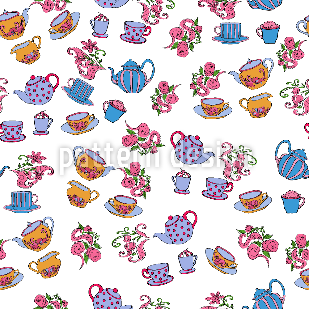 Teapots And Flowers Seamless Vector Pattern Design