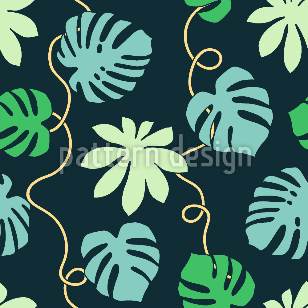 Tropical Leaf Tendrils Seamless Vector Pattern Design