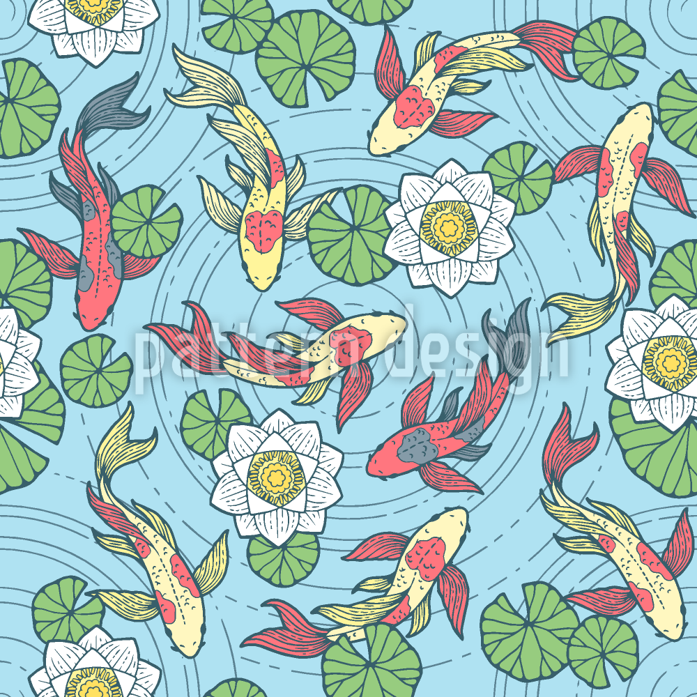 | Description | Seamless Japanese pattern with scattered carps and koi in the pond among flowering white lotuses. | ||