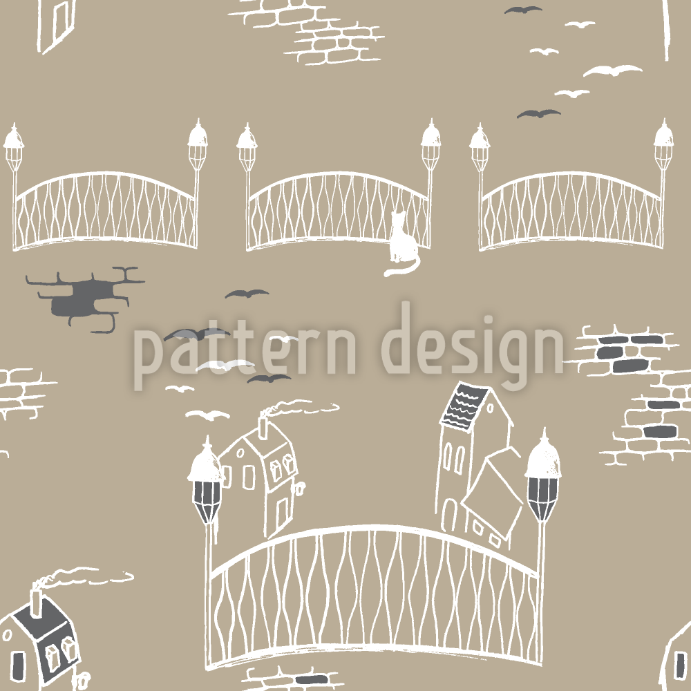 Kitten Bridge In Paris Seamless Vector Pattern Design