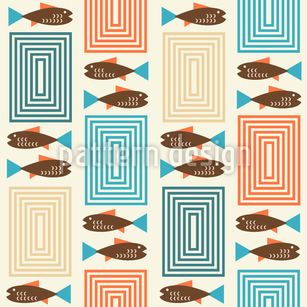 Rectangles And Fish Seamless Vector Pattern Design