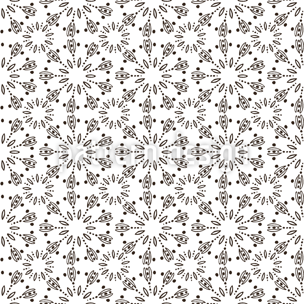 | Description | Seamless monochrome pattern design with doodled embellishments arranged in circles. | ||