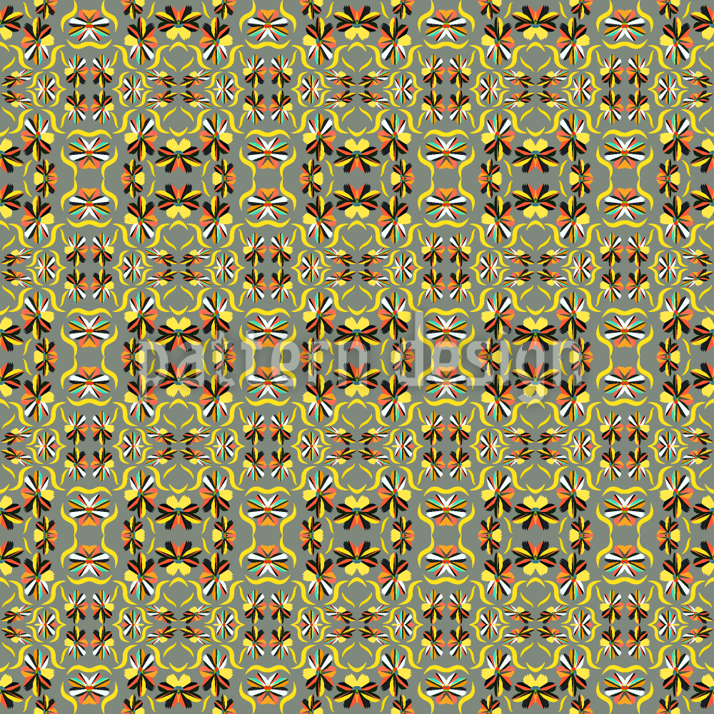 | Description | Kaleidoscopic pattern of angularly flowers. | ||