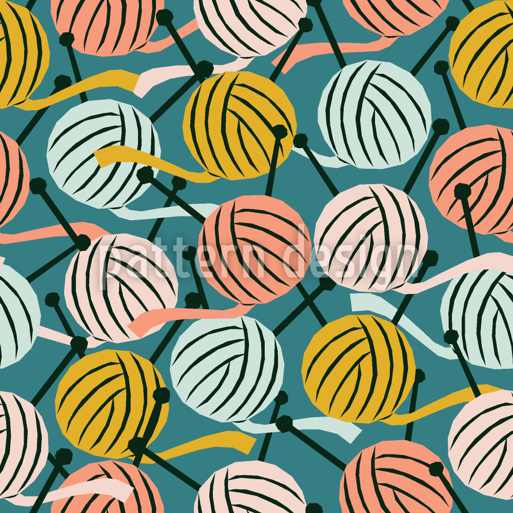 Knitting With Needles Seamless Vector Pattern Design