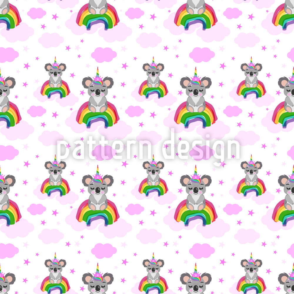 | Description | Seamless pattern with cute unicorn koalas on rainbows and clouds. | ||