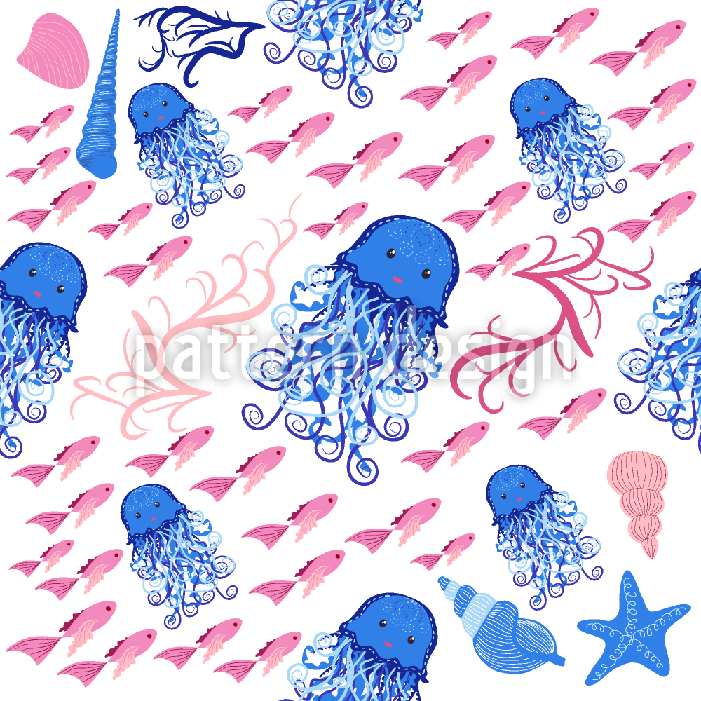 Cute Doodle Jellyfishes Seamless Vector Pattern Design