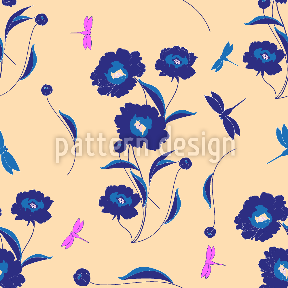 Peonies And Dragonflies Seamless Vector Pattern Design
